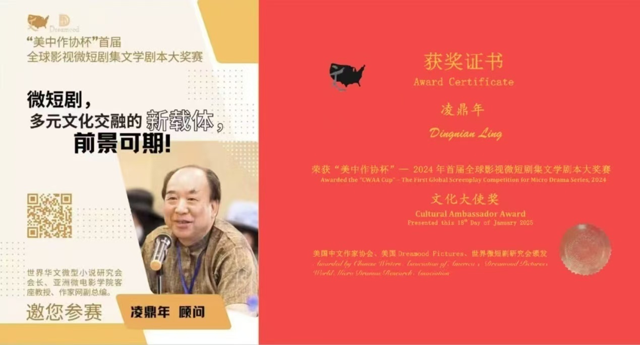 法治期刊网讯(常红锋 林娜)由美国中文作家协会主办,美国Dreamood Pictures影视公司和世界微短剧研究会承办,世界华文微型小说研究会协办的“美中作协杯-首届全球影视微短剧文学剧本大奖赛”颁奖典礼日前在美国隆重举行,共有28部作品获奖。海内外多个国家文学界、影视界的众多大咖在线上线下参加了这次颁奖盛典。