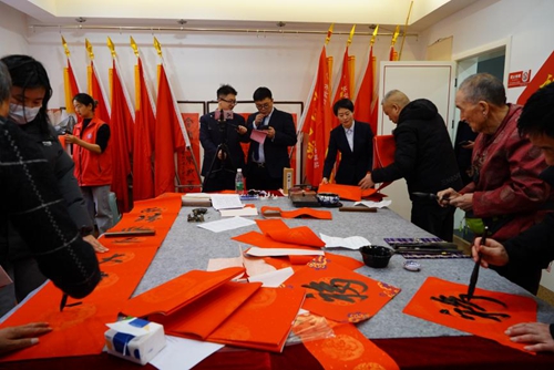 1月21日的活动现场,共向市民送出新春对联及福字近百余幅。